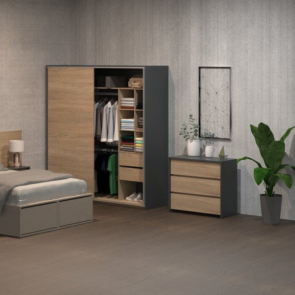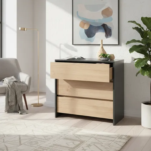 👕 Organizá tu espacio con elegancia y funcionalidad con la Cómoda 3 Cajones Niza CLN090 en color gris roble, ideal para guardar tu ropa, accesorios o lo que necesites de forma ordenada.