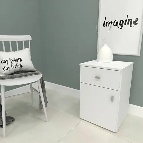 🛏️ Sumá estilo y practicidad a tu dormitorio con la Mesa de Luz Puerta y Cajón, ideal para mantener tus objetos personales al alcance y tu espacio ordenado.
