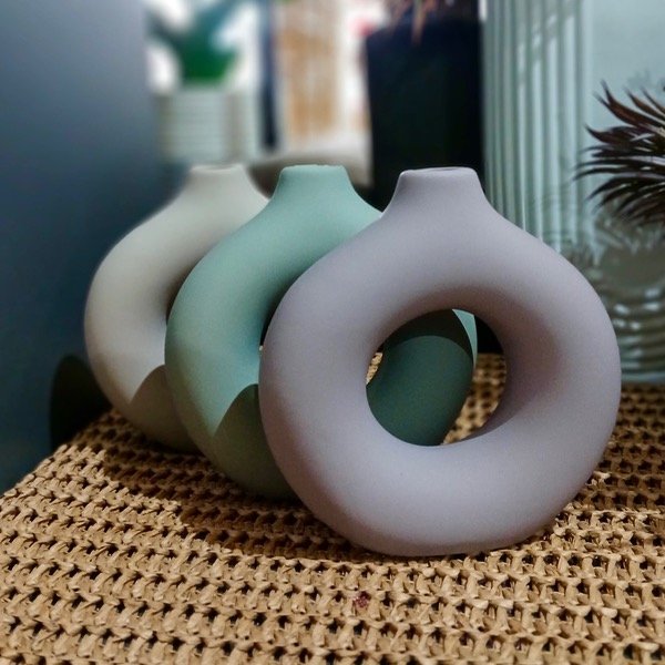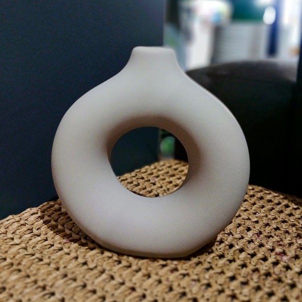 Este florero de cerámica combina diseño minimalista con un acabado delicado.