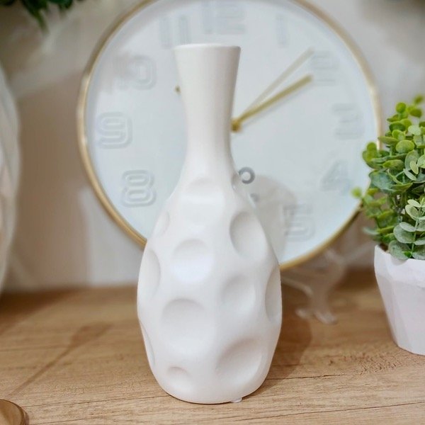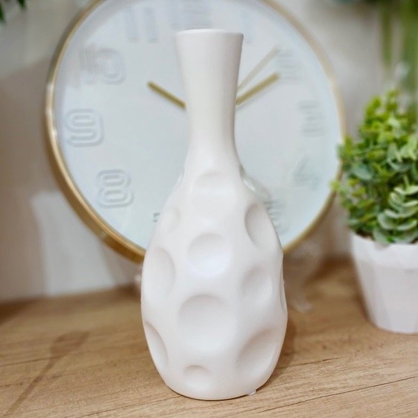 Este florero de cerámica combina diseño minimalista con un acabado delicado.
