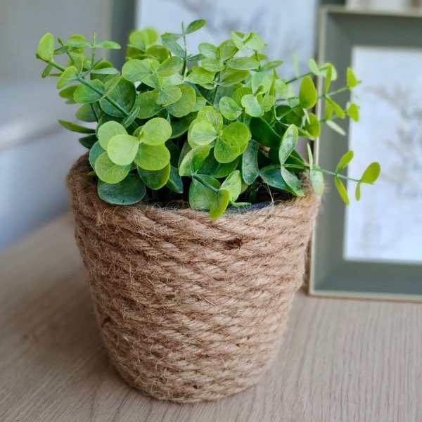 Sumá un toque verde sin mantenimiento con esta planta artificial con maceta tejida de yute perfecta para espacios pequeños