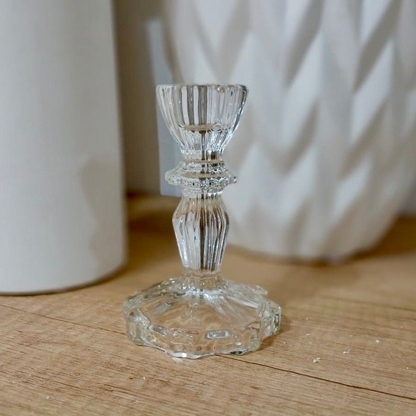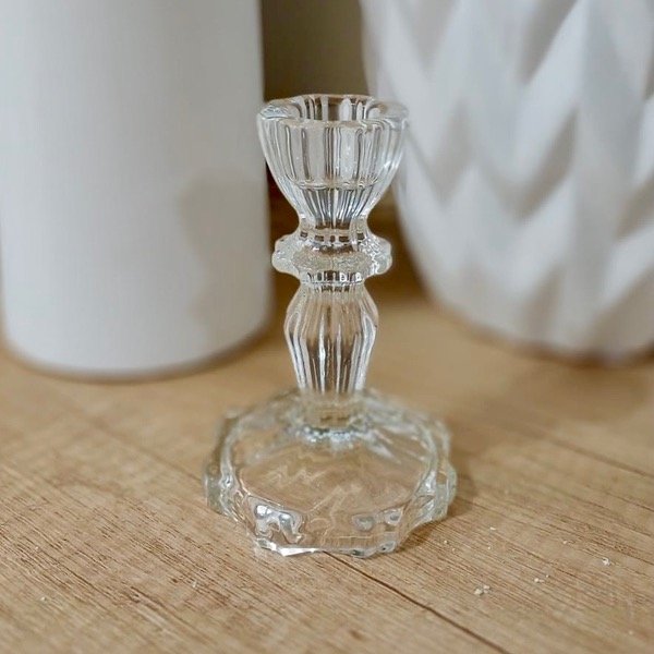 Este porta velas de vidrio reforzado con forma de candelabro combina diseño simple y materiales resistentes para dar un toque cálido y decorativo a tu hogar.