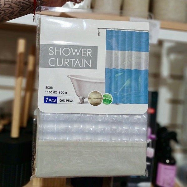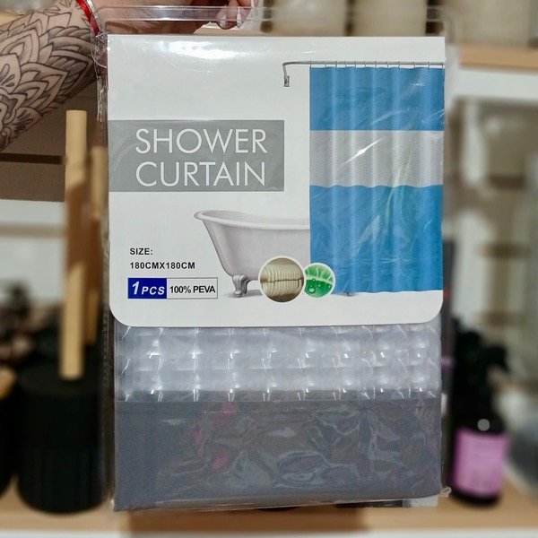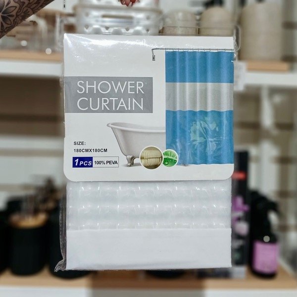 Esta cortina de baño con ganchos viene lista para usar y con un diseño neutro que combina con cualquier decoración.