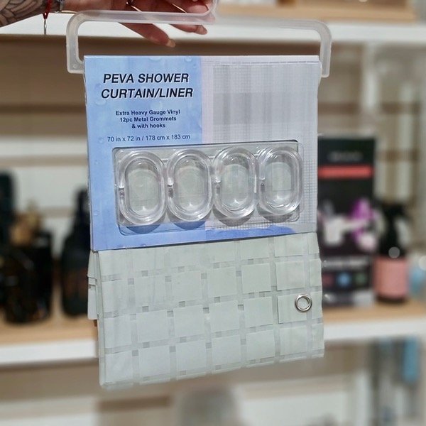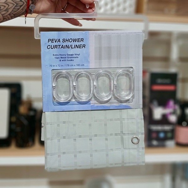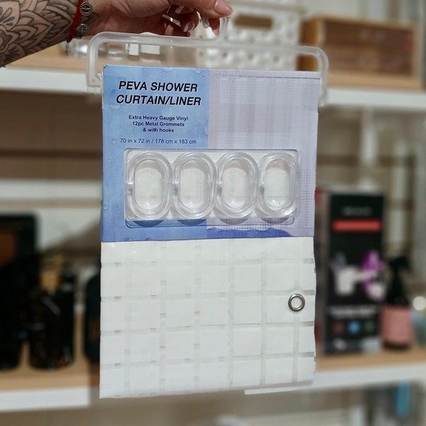 Esta cortina de baño con ganchos viene lista para usar y con un diseño neutro que combina con cualquier decoración.