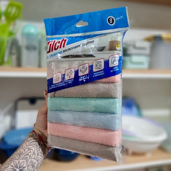 Set de 8 paños multiuso ideales para mantener tu hogar siempre limpio y ordenado.