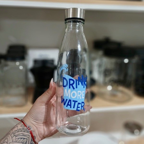 Sumá un toque vintage a tu mesa o cocina con esta botella de vidrio de 1 litro, ideal para agua, jugos o como objeto decorativo.