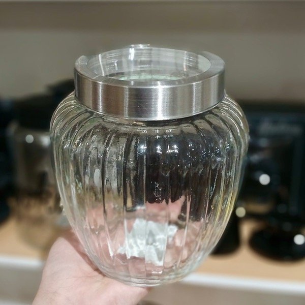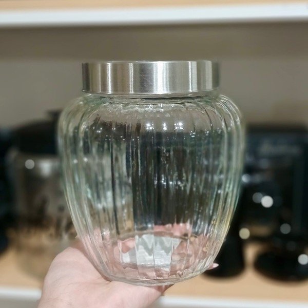 Este frasco con tapa acero de 20CM combina estilo clásico con practicidad para guardar caramelos, galletitas, frutos secos y más.