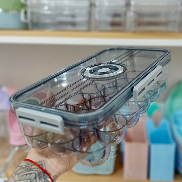 Maximizá el espacio y el orden de tu heladera con este porta huevos, hecho en acrilico resistente y con fácil acceso.
