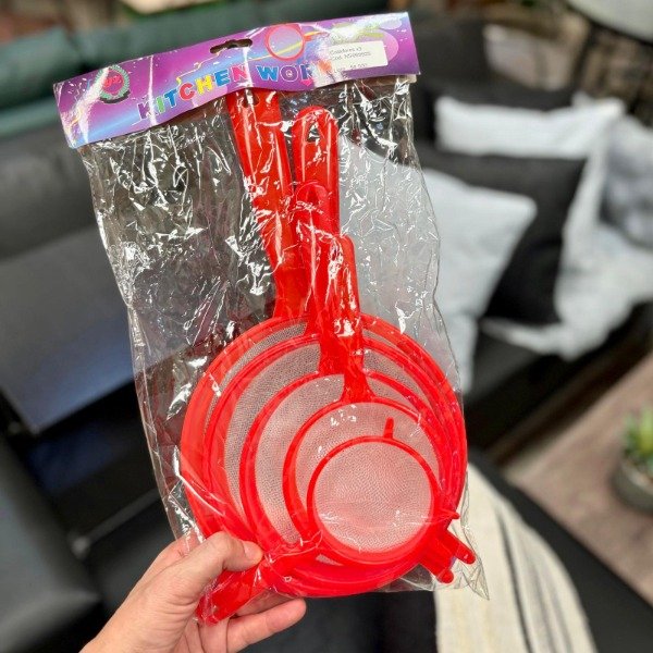 Este set x5 coladores plásticos combina practicidad y diseño con manija. Ideal para frutas, verduras o pastas, con un tamaño cómodo para el uso diario.