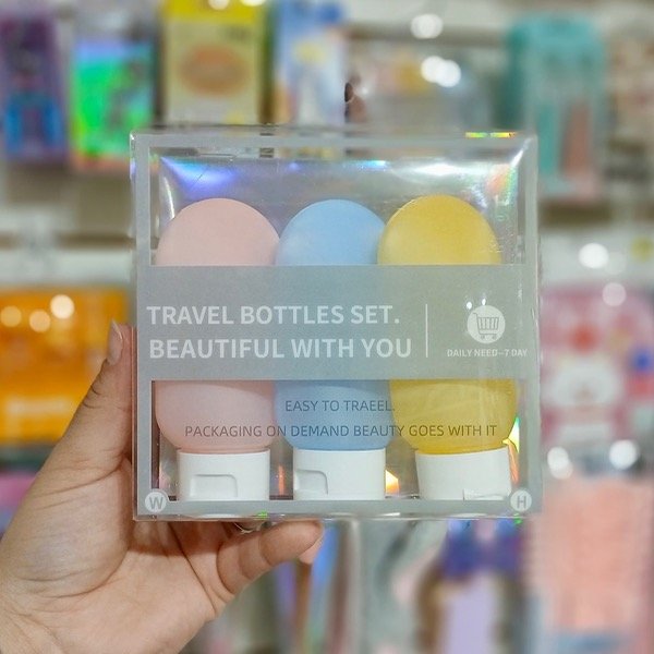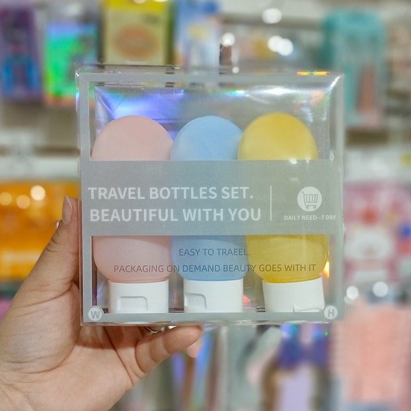 ✨ El set incluye 3 botellas de colores surtidos con tapa a rosca, ideales para organizar tus esenciales de cuidado personal en cada viaje.