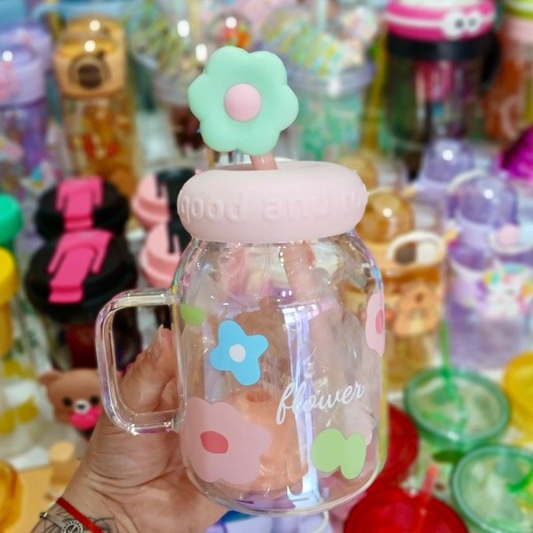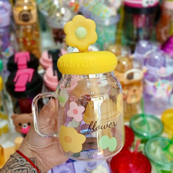 Este vaso de vidrio con tapa, asa y porta fruta es ideal para el uso diario, reuniones o eventos.
