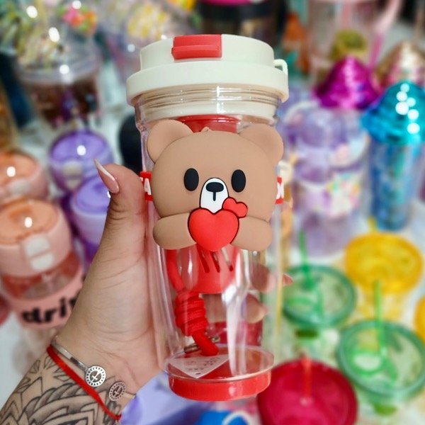 ¡Prácticos y coloridos! 🌈 Este vaso de osito con su accesorio para fruta es ideal para el uso diario, reuniones o eventos. Fabricados en acrilico resistente, combinan ligereza con una buena durabilidad, y su formato clásico los hace cómodos para cualquier ocasión.