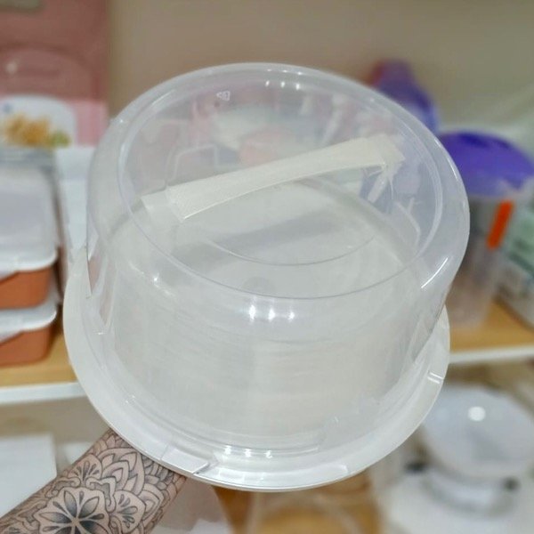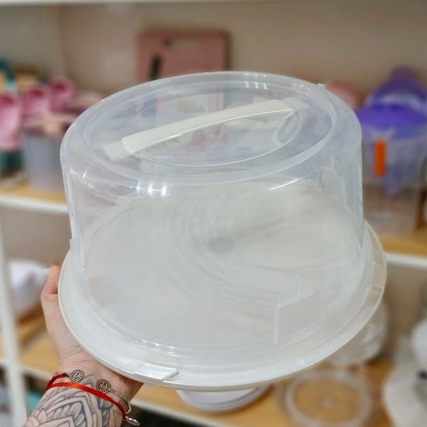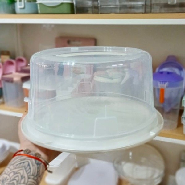 Elegante y funcional, perfecta para mantener tus tortas, postres o comidas siempre frescas. Su base beige combina con cualquier cocina y las trabas aseguran un cierre firme y práctico 👌.