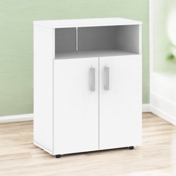 • Diseño con 2 puertas para ocultar el estante inferior.