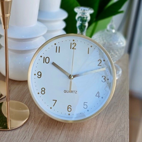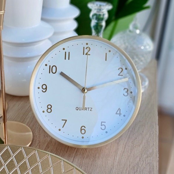 Elegí este reloj decorativo para darle vida a tu espacio. Su diseño redondo y dorado combina perfecto con cocinas, livings, oficinas o dormitorios.