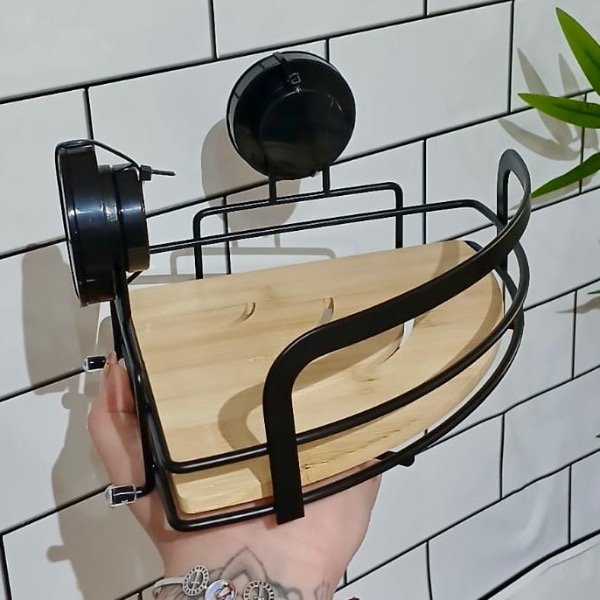 💪 Fabricado en bamboo resistente con acabado negro, es ideal para ambientes húmedos y de uso diario.