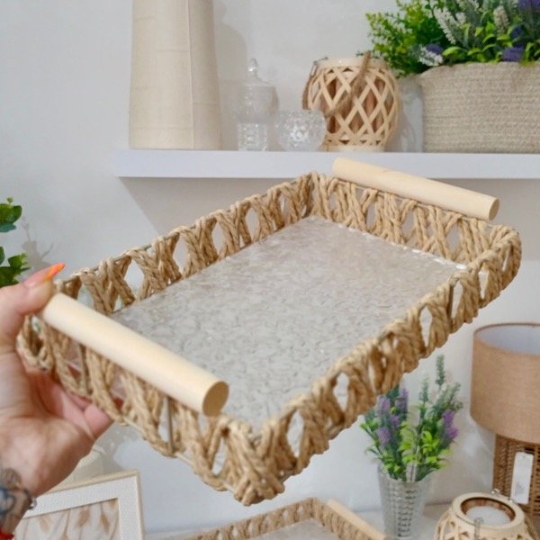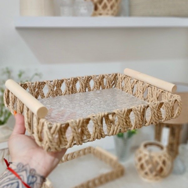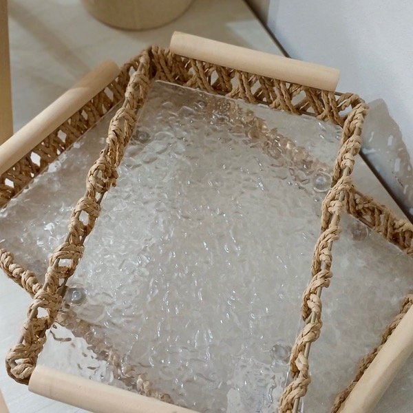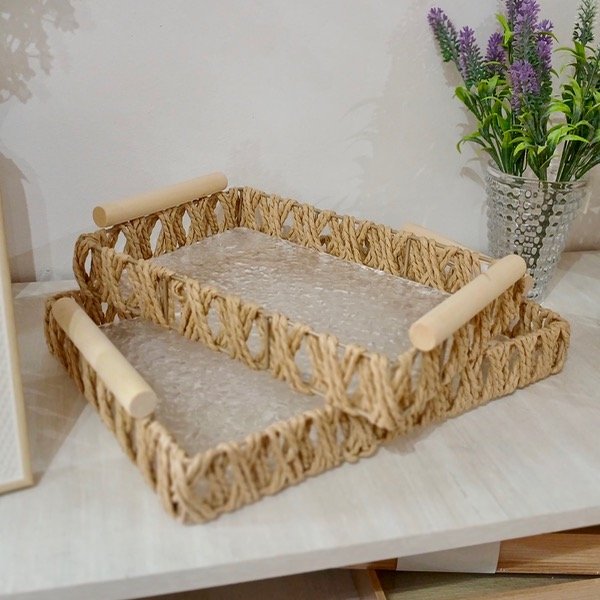 Este set de bandejas rectangulares de ratán combina funcionalidad y estilo artesanal, aportando un aire cálido y decorativo a cualquier ambiente. Perfectas para servir, organizar o simplemente embellecer tu mesa y tus espacios.
