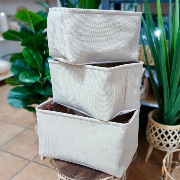Este set de 3 canastos rectangulares de tela es ideal para ropa, juguetes, baño o deco.