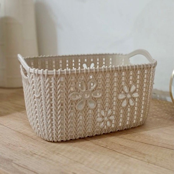Esta cesta con asas 3.5 L es ideal para guardar mantas, ropa, juguetes o decorar cualquier rincón. Su textura y tono natural aportan calidez a cualquier ambiente.