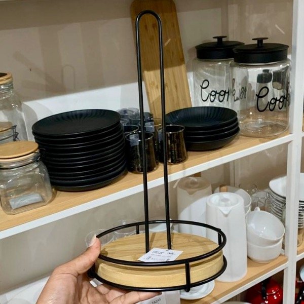 Porta rollo de papel de hierro y madera , práctico, liviano y con diseño minimalista. Perfecto para dar un toque moderno y funcional a tu cocina.