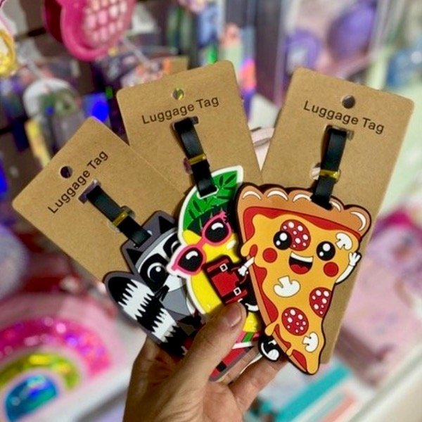 Este identificador de valija tiene diseños originales que destacan entre las demás maletas. Incluye espacio para tus datos y una tira segura para sujetarlo.