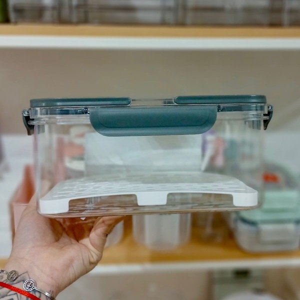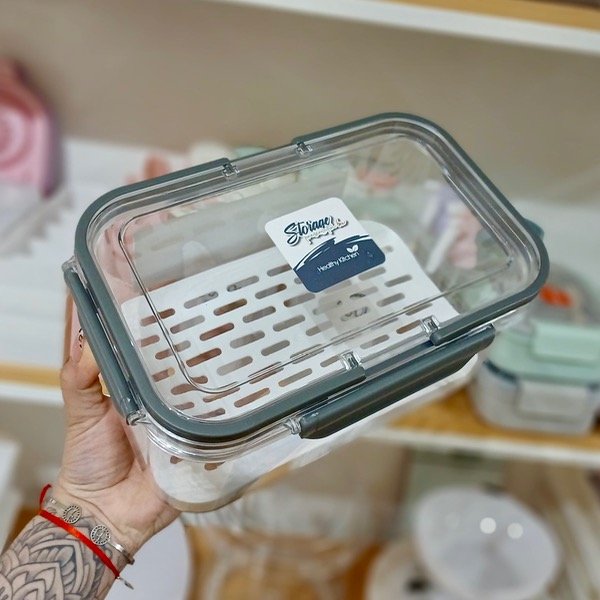 Organizá tus comidas con este tupper acrilico con escurridor de 24 x 16 x 12 cm, ideal para conservar alimentos frescos en la heladera o llevar viandas.